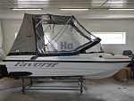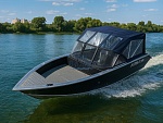 Прозрачные боковины и окно над ветровым стеклом обеспечивают отличный обзор и естественное освещение. Легкий доступ к кормовой части лодки через заднюю откидную дверь. Вентиляционные клапаны и боковые молнии обеспечивают комфорт и удобство. Чехол-банан для надежной защиты и удобного хранения.