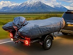 • Тент с утягивающей стропой под дном лодки и дополнительными стропами крепления к прицепу по периметру